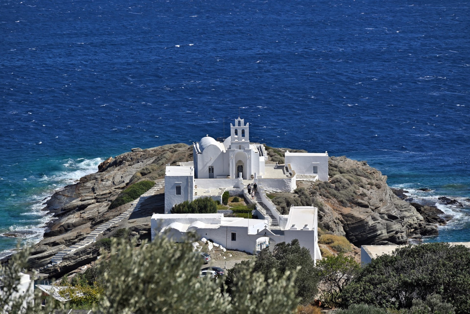During antiquity, the inhabitants of Sifnos were among the wealthiest because of their gold and silver mines. In Delphi they had dedicated to Apollo the most magnificent "treasure", entirely made from white marble from Paros and decorated with priceless sculptures. From the monastery of Prophet Elias, the highest point of the island, we can enjoy one of the most impressive panoramas of the archipelago.