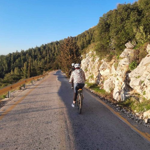 Hymettus Mountain on e-bike. Cycling over the city